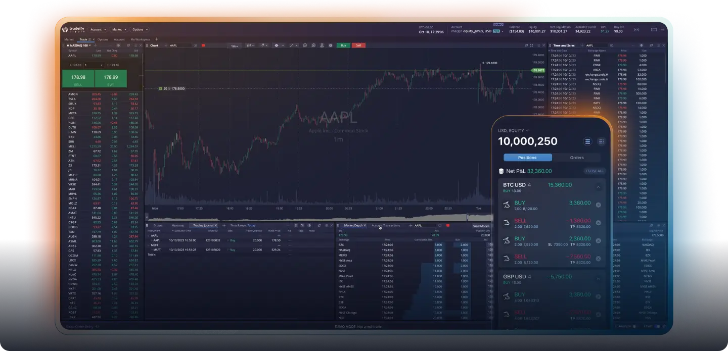 Professional charting, order types, and risk tools